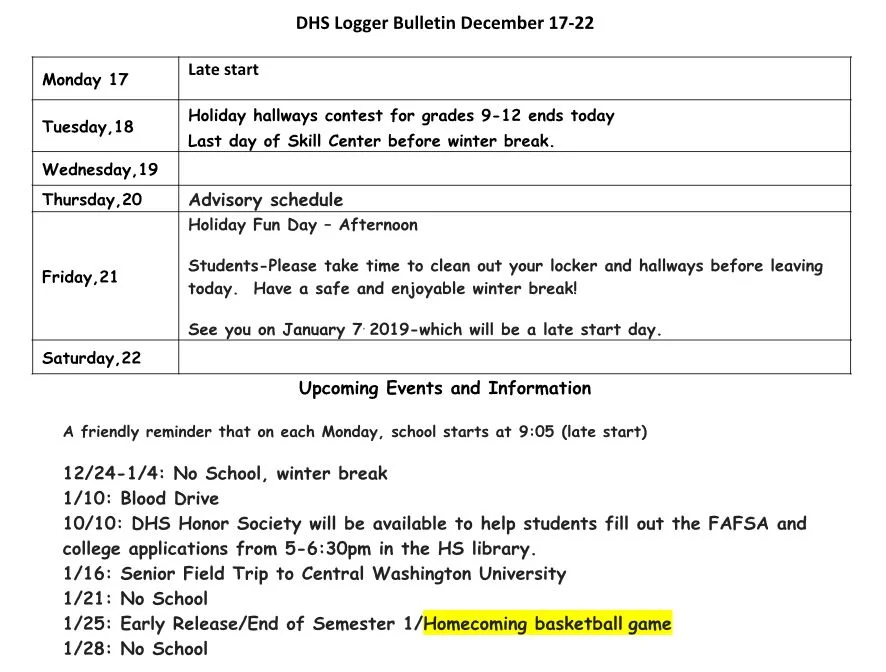 Weekly DHS Logger Bulletin